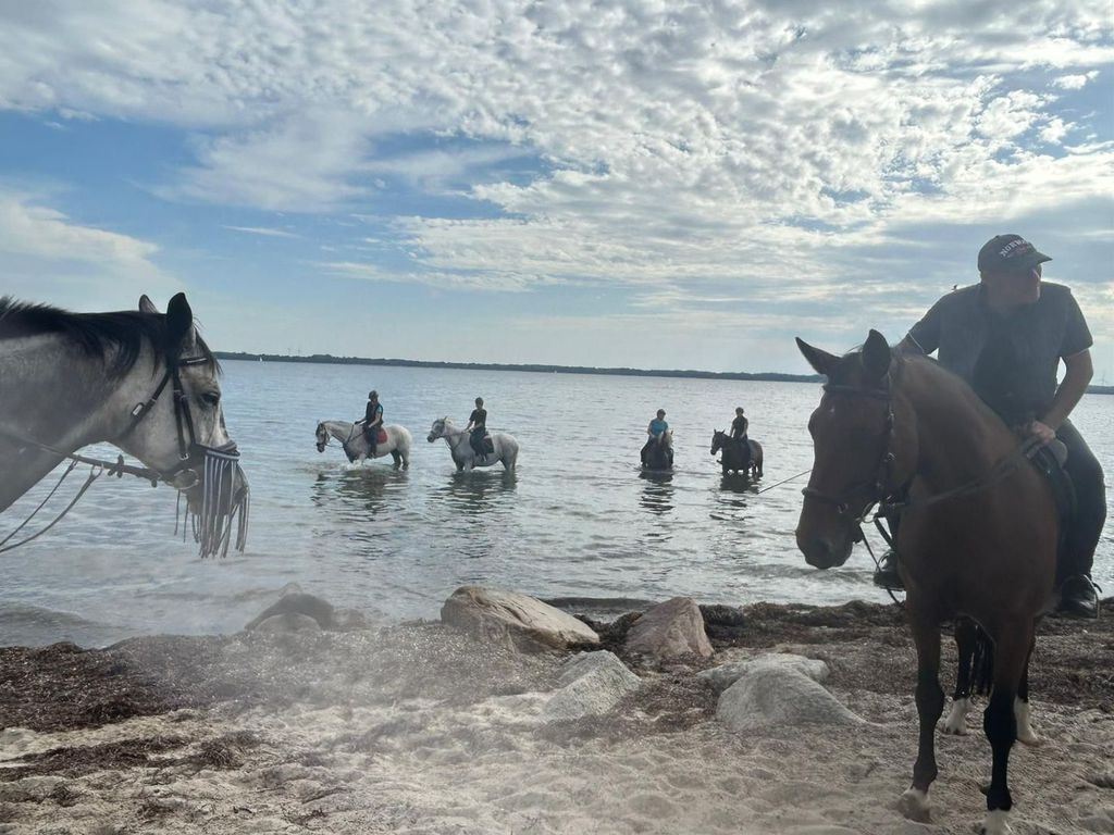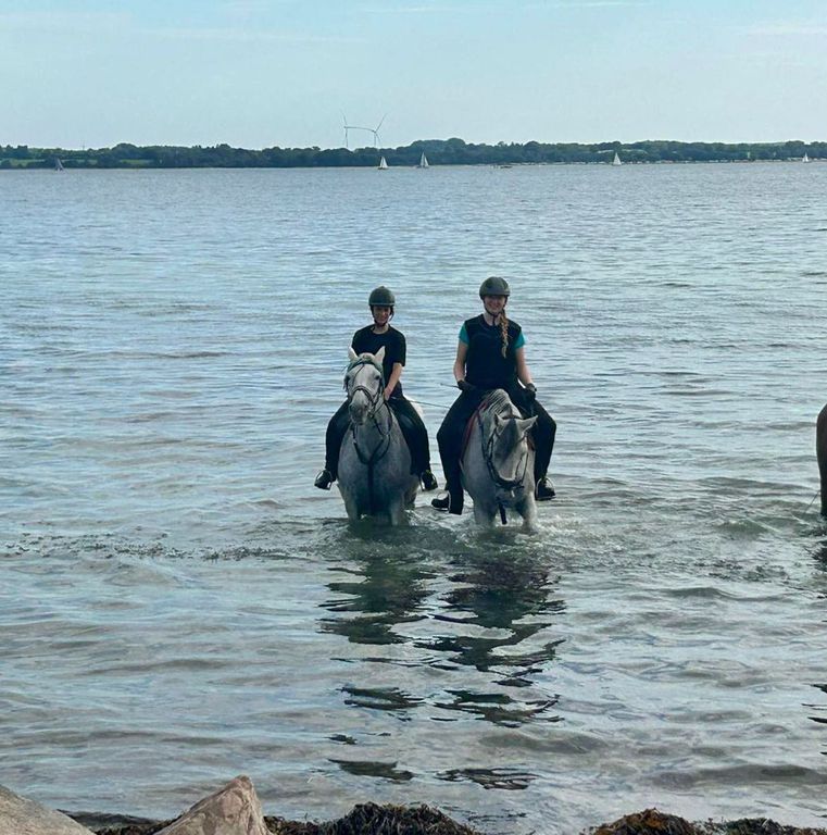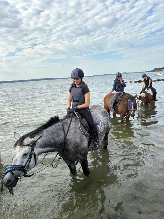 Danach brachen die Reiter*innen zu den großen, zweistündigen Ausritten auf. Am Strand wurde ausgiebig geplanscht - und Füße an langen Beinen auf kleineren Pferden wurden dabei auch schon mal von